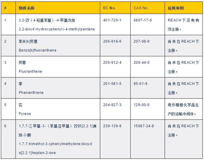 2018年9月4日,歐洲化學(xué)品管理局(European Chemicals Agency,ECHA)官方發(fā)布第20批候選REACH高關(guān)注物質(zhì)公眾征詢,提議將4,4'-(1,3-二甲基丁基)二苯酚、苯并(k)熒蒽、熒蒽、菲、芘、全氟己酸及其銨鹽共6項(xiàng)物質(zhì)列入高關(guān)注物質(zhì)(Substances of Very High Concern,SVHC)清單,該公眾征詢將于2018年10月19日截止。2019年1月15日- ECHA正式增加新的5種物質(zhì)進(jìn)入到SVHC清單中.另外一種物質(zhì)也由于歐盟委員會(huì)的決議,正式加入到SVHC清單。因此SVHC總數(shù)從191個(gè)增加到197個(gè)。這已經(jīng)是ECHA新增的第20批高關(guān)注物質(zhì)了!