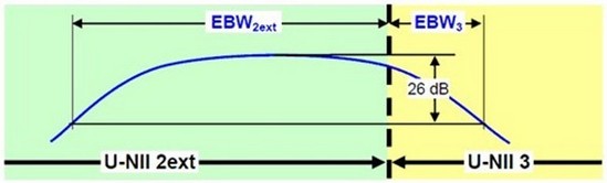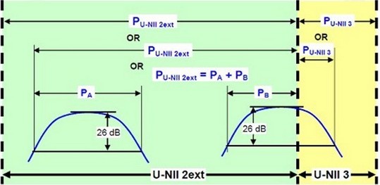 (3) 如果有一個(gè)信號(hào)跨越兩個(gè)UNII的頻帶,這時(shí)必須以被跨越的頻率做分隔,來(lái)判斷在不同UNII頻段的26dB EBW。