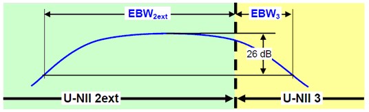 (3) 如果有一個(gè)信號(hào)跨越兩個(gè)UNII的頻帶,這時(shí)必須以被跨越的頻率做分隔,來(lái)判斷在不同UNII頻段的26dB EBW。